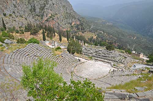 auf der das Theater, der Apollontempel und das Schatzhaus der Athener zu sehen sind
