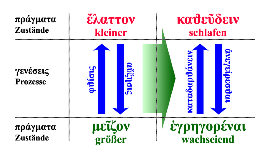 a) Parallelisierung des Pärchens Leben – Tod mit dem ähnlichen Wachsein – Schlafen.