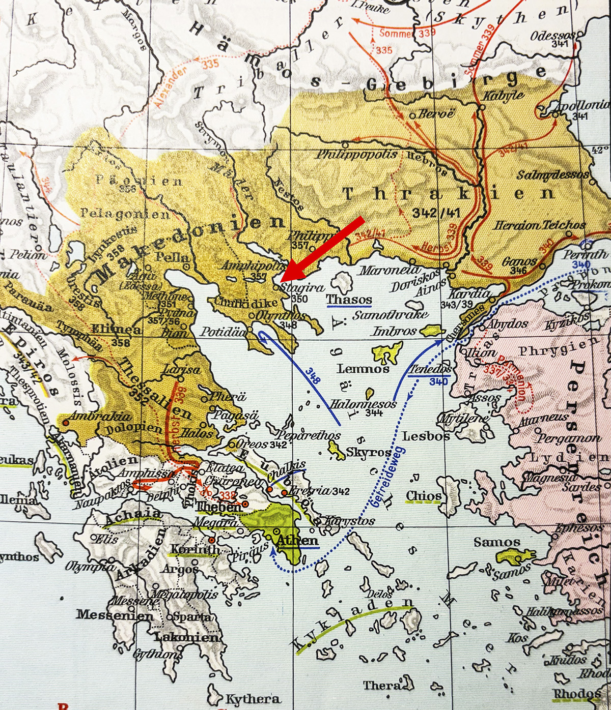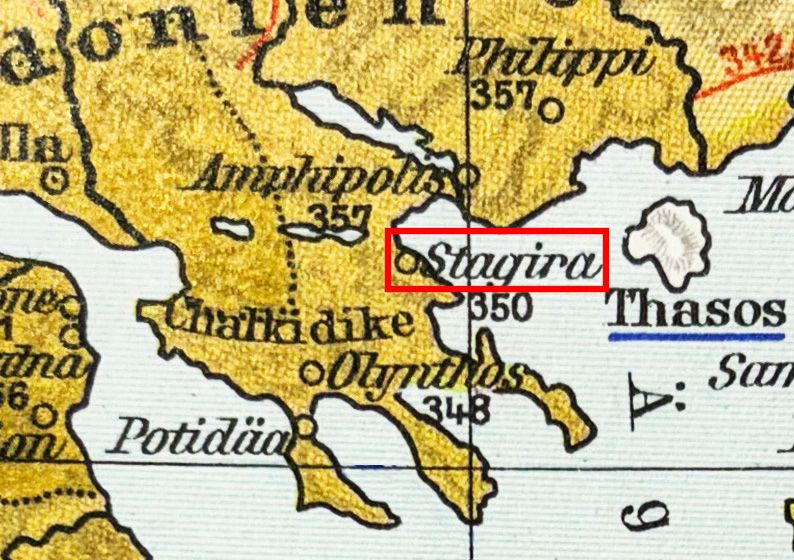 Aristoteles wurde 384 v. Chr. in Stageira auf der Chalkidike (Nordgriechenland) geboren. Sein Vater, Nikomachos, war Arzt im Dienste Königs Amyntas III. (Großvater von Alexander dem Großen), seine Mutter, Phaestis, stammte auch aus einer Arztfamilie.